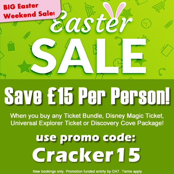 Buy any Ticket Bundle, Disney Magic Ticket, Universal Orlando Explorer Ticket or Discovery Cove Package this Easter weekend and SAVE £15 PER PERSON. This offer is valid for 2022 and 2023 boolings.
